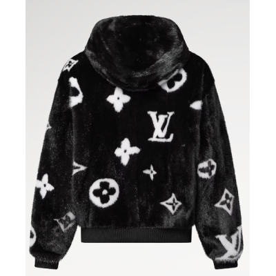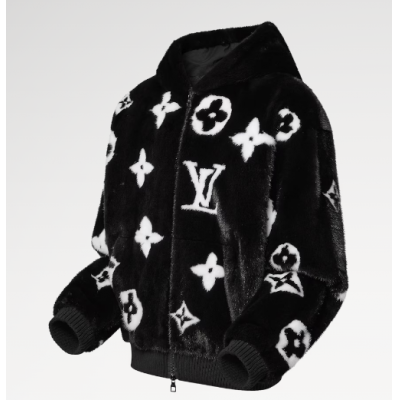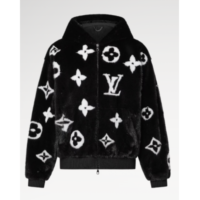 路易威登LV 1AF389 Monogram 男士水貂毛皮革拉链连帽衫