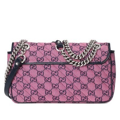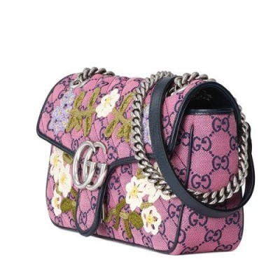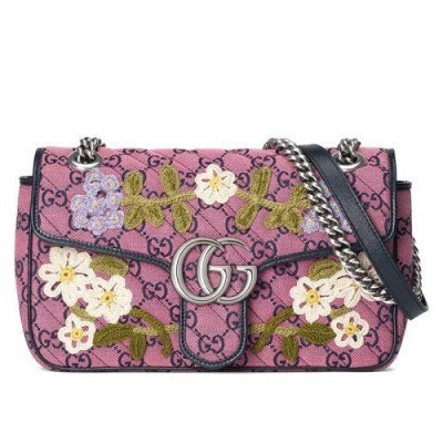 GUCCI/古驰小号GG帆布花卉贴花银色饰面双G扣斜挎单肩手提包