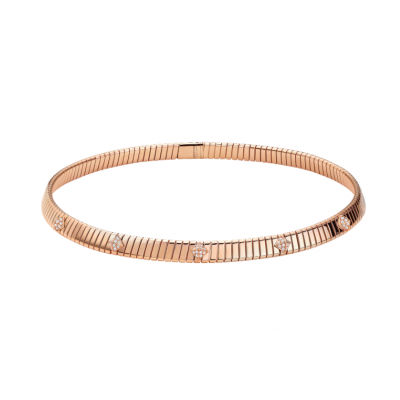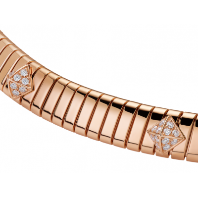 Bvlgari宝格丽Tubogas系列18K玫瑰金项链,缀以密镶钻石饰钉