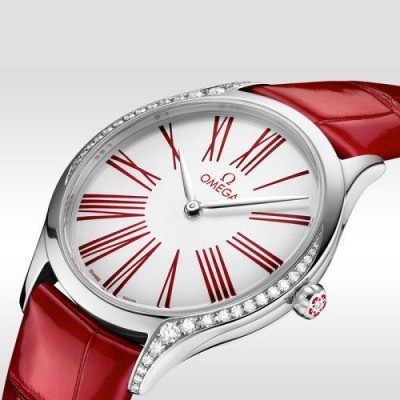 OMEGA/欧米茄 碟飞系列镶钻石英女士腕表 皮带白盘